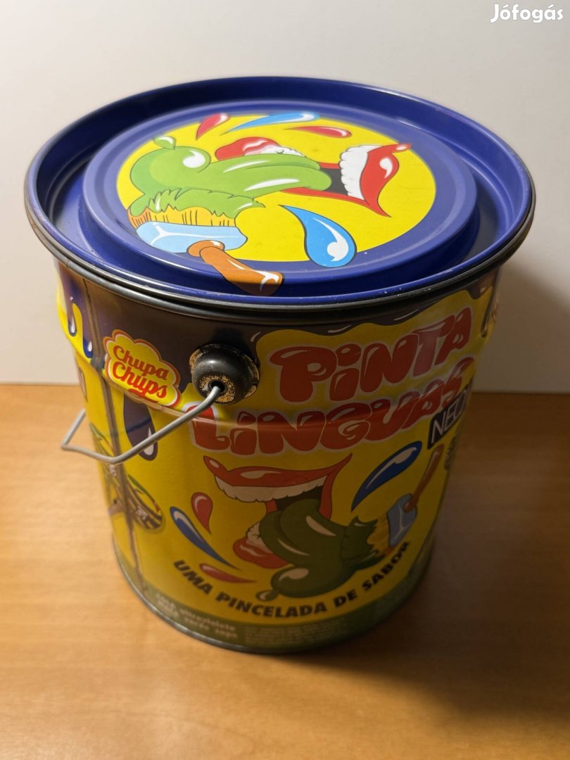Eredeti Chupa Chups üres fém doboz Magic Box dizájnnal, füllel