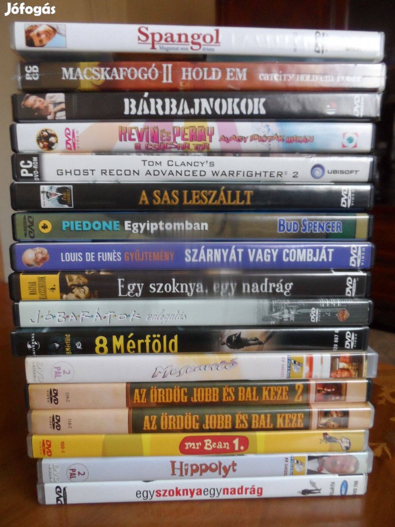 Újszerű, egyszer játszott eredeti filmek (17db) lehetőleg egyben olcsón eladók 7500Ft, darabonként 600 Ft. Postázni 3 db vásárlása esetén tudom. Átvehető XV. Bercsényi Miklós u. egyeztetett időben bármikor.