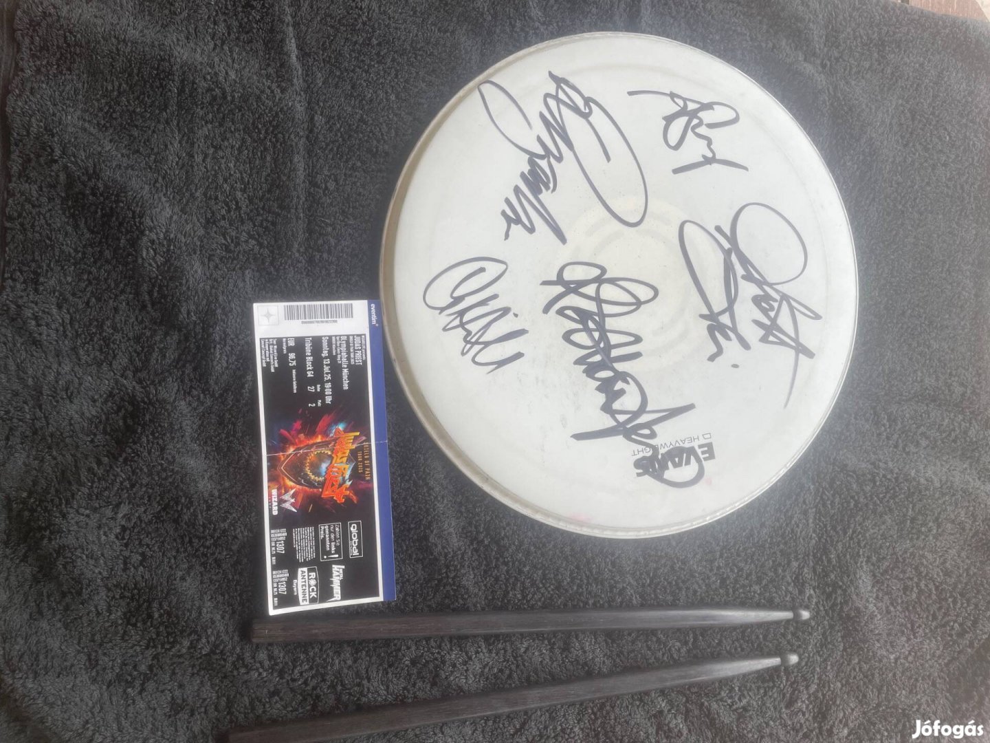 Eredeti, Judas Priest zenekar által dedikált dobfej