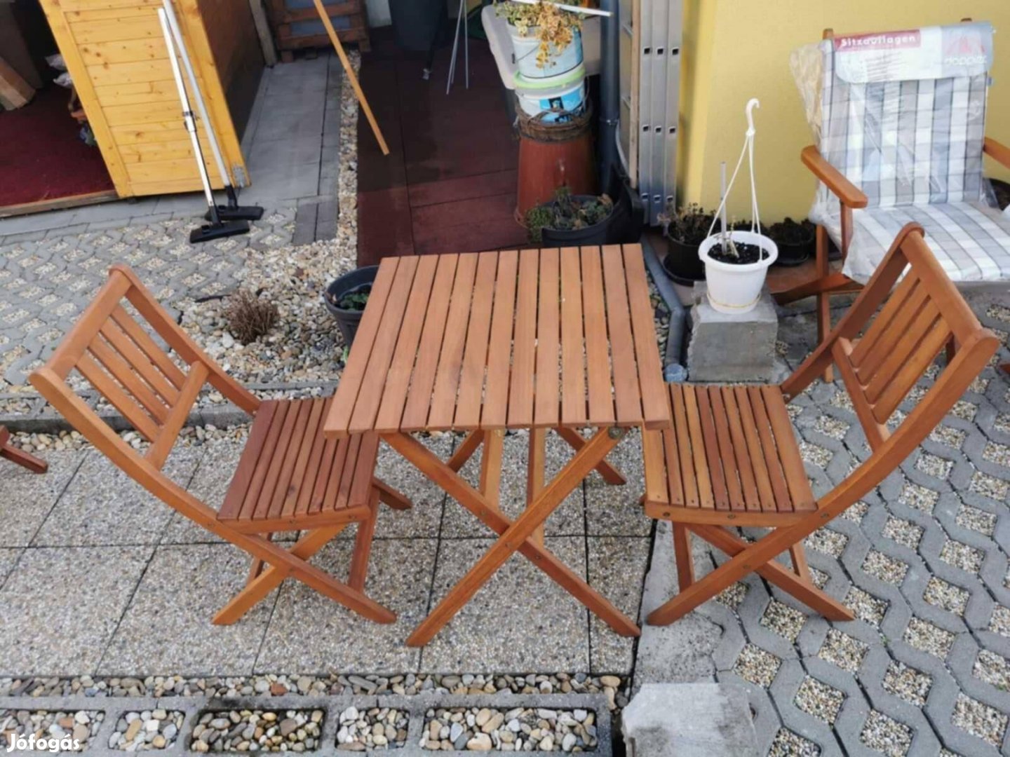 Kihasználatlanság miatt eladó a képen látható összecsukható kerti bútor szett . Asztal + két darab szék. Várja új gazdáját.