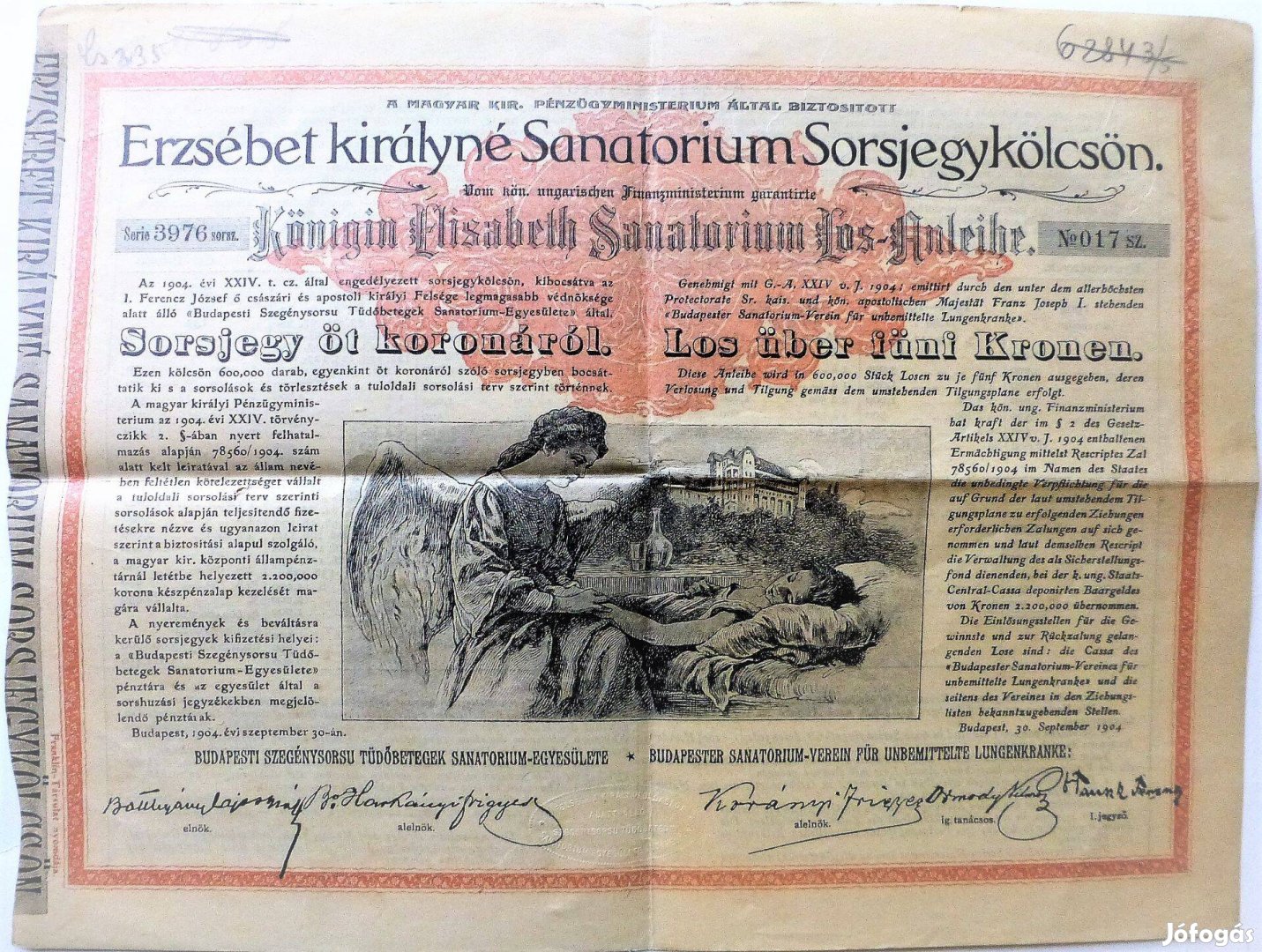 Erzsébet királyné Sanatorium Sorsjegykölcsön 1904