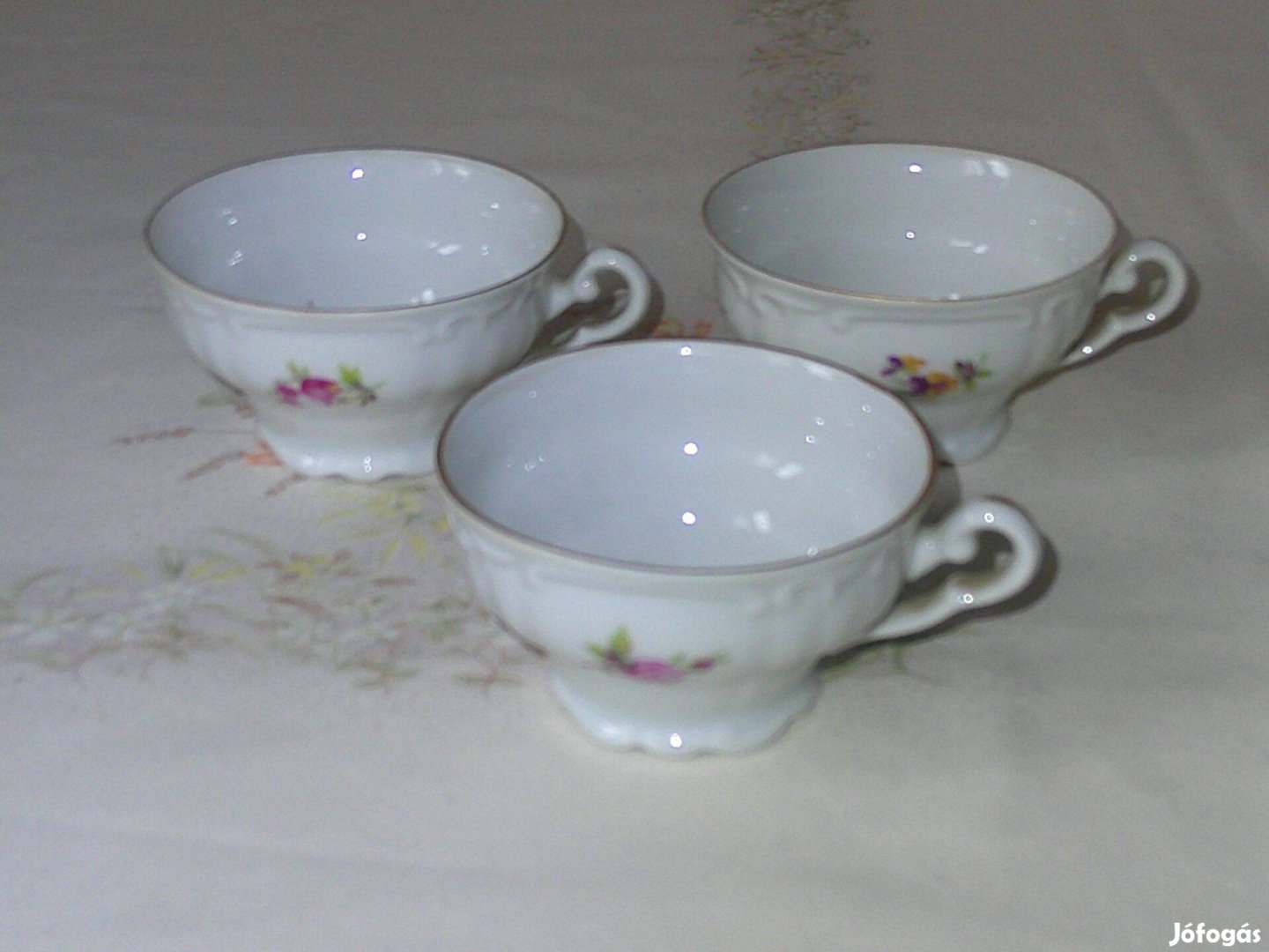 A képen látható 3 db. régebbi virágos porcelán kávés csésze egyben eladó.