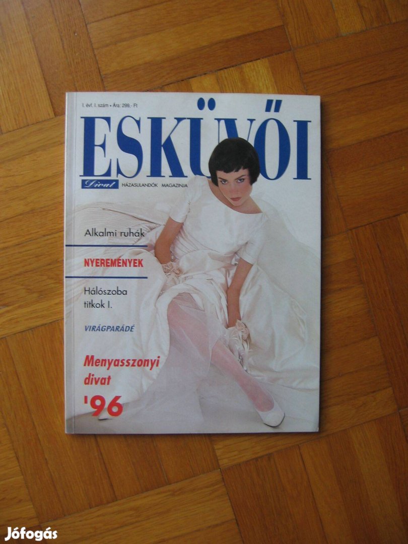 1996.év, házasulandók magazinja. Minden, ami egy esküvőhöz szükséges. Ruhakölcsönzők menyasszonyoknak és vőlegényeknek, tanácsok: szépségápolás, vőfély, karikagyűrű, ékszerek, frizura, virág, teríték, meghívók, autókölcsönzés, illemtan, fotózás, szervezés.Szabásminta nincs benne.