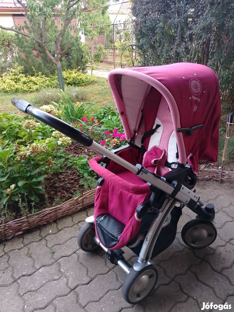 Esprit babakocsi, több funkció elérhető: mély kocsiként és sport babakocsiként is használható, változtatható tolásirány. Kivehető mózeskosár, lábzsák tartozék.