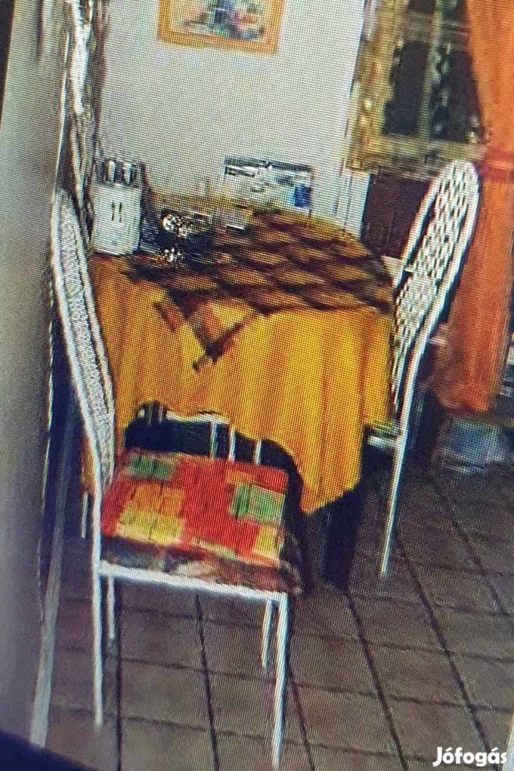 Eladó egy ovális üveg lapos étkezőasztal fém lábbal.