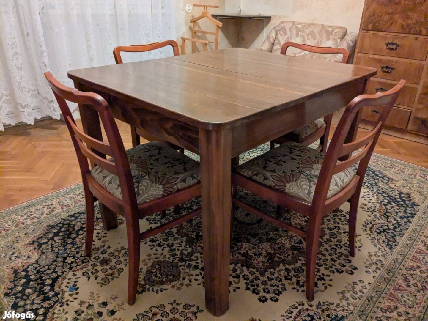 Egy kis ráfordítással nagyon szép étkező garnitúrát lehet belőle csinálni, de igazából most is tökéletesen használható.