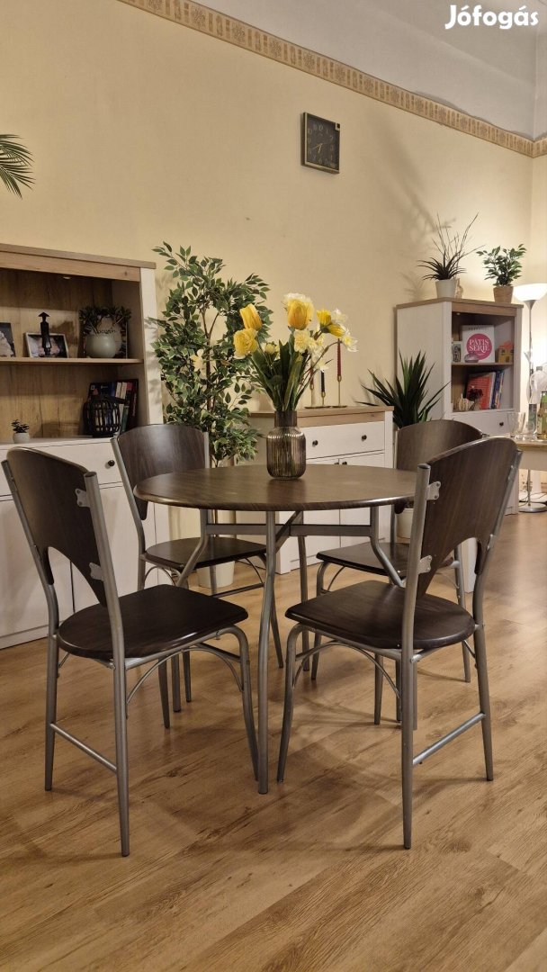 Étkező garnitúra, asztal +4 szék eladó. Asztal 90cm átmérőjű magassága 76cm. Jó állapotban, szétszerelve Budapest 14.ker ből vihető. Szállításban is tudok segíteni. a 4. 13. 14.15. kerületekben.