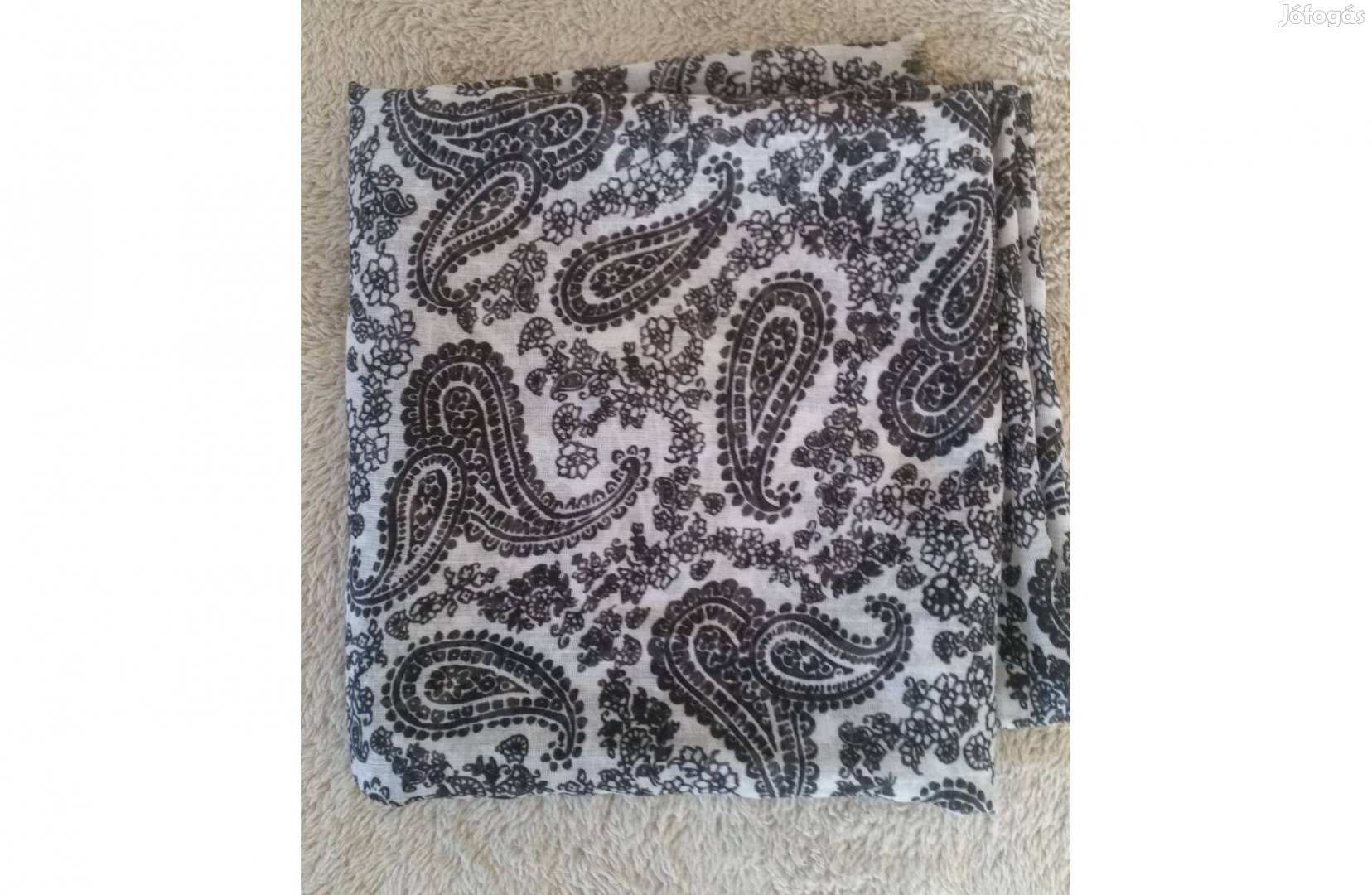 Etno paisley kasmír mintás szürke-fekete puha nagy sál, stóla, kendő