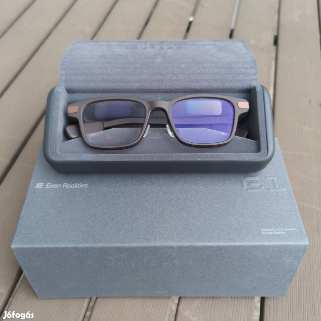 Even Realities G1. Minimalista okosszemüveg, nincs kamera nincs audio, csak üzenetek és értesítések HUD displayen, két nap üzemidő, navigáció,jegyzetek, fordítás és AI. Májusban lesz egy éves, hibátlan állapotú karcmentes, minden tartozékával eladó.