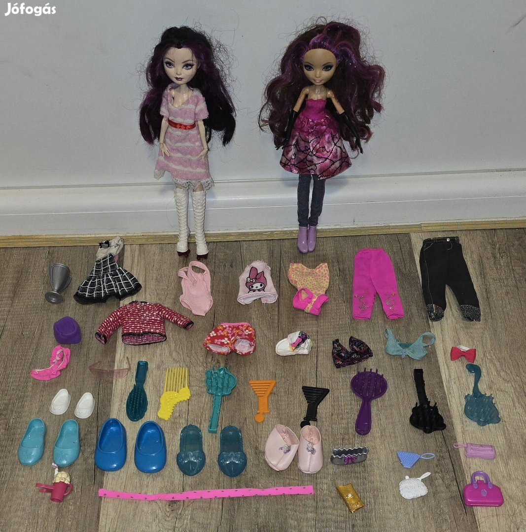 2 eredeti,megkímélt állapotú 25 cm magas Ever After High baba a képeken látható kiegészítőkkel egyben eladó 10 000-ért