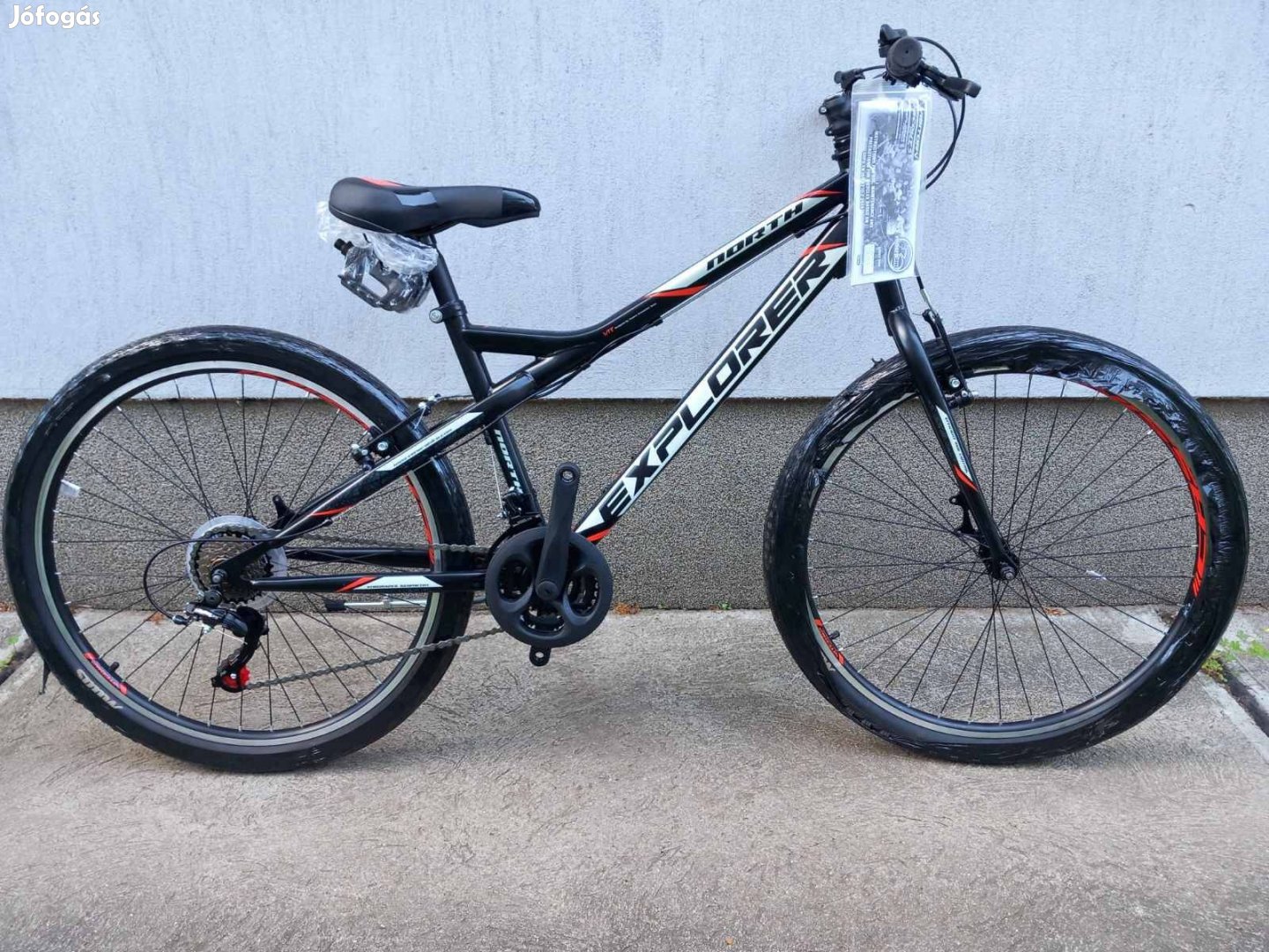 Teljesen új Explorer North gyerekkerékpár 41 cm méretben,26-os kerekekkel,nagyjából 144cm-es magasságtól.18 sebessége Shimano Tourney váltórendszer,V-fékek,duplafalú felnik 2.1 Mitas gumikkal,kitámasztó