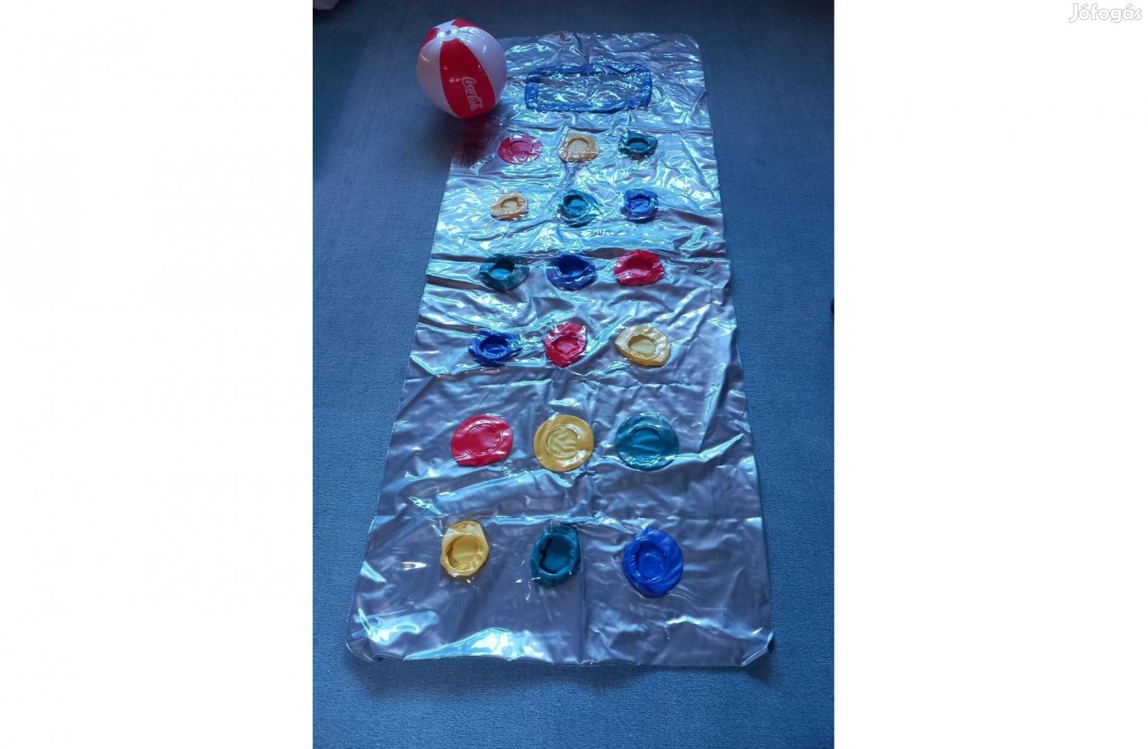 Ezüst Gumimatrac ablakos és átlátszó poharas 180 x 70 cm - Új + Coca-Cola strandlabda ajándék