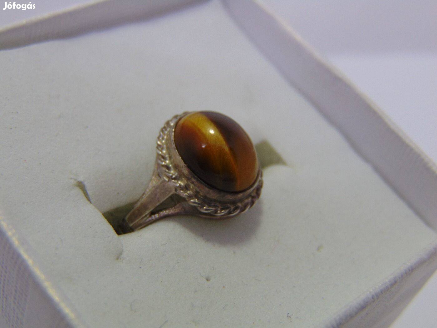 925-ös ezüst újszerű gyűrű, tigrisszemmel. Belső átmérője 17,6 mm, mérete 55-ös.