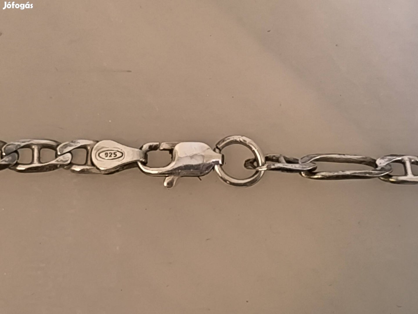 Jelzett ezüst figaro nyaklánc, 44.5 cm hosszú, 12.3 gramm.