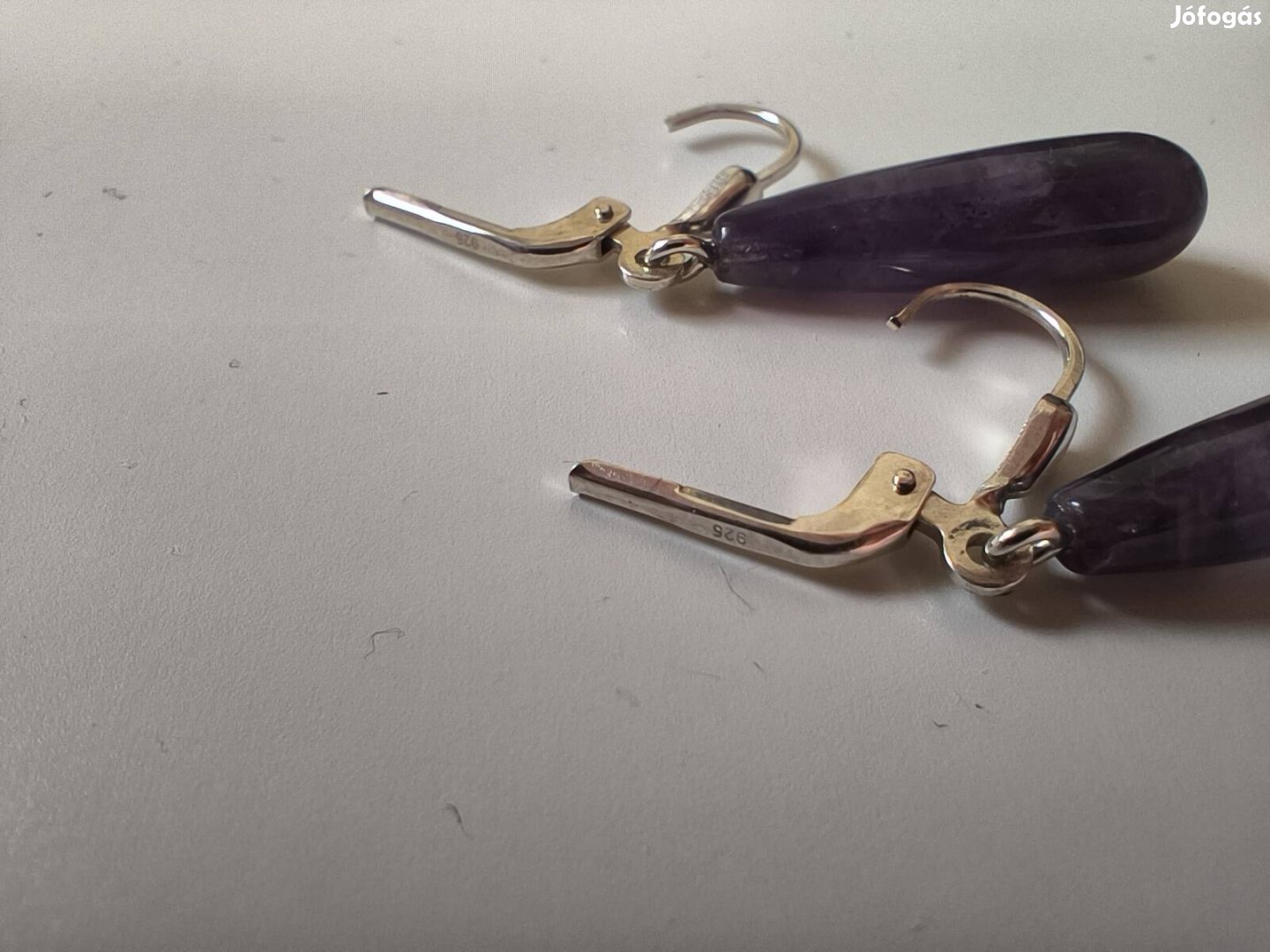 Jelzett, 925 ezüst fülbevaló ametiszt cseppek.