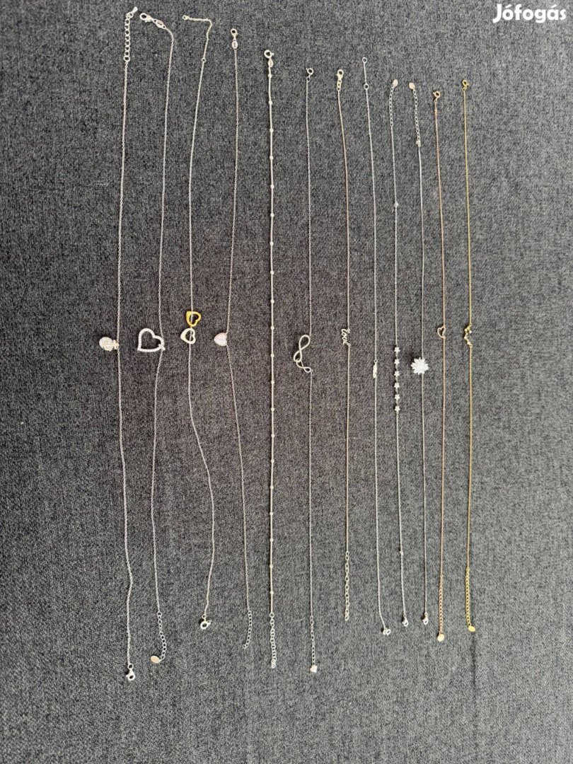 Kihasználatlanság miatt eladó ezüst nyakláncok. Fémjelzett ezüstök, magyarországi ékszerüzletben vásároltak. Nem használtak, de az állás miatt egy tisztítás rájuk férhet. Többnyire 43-45 cm hosszúak.
