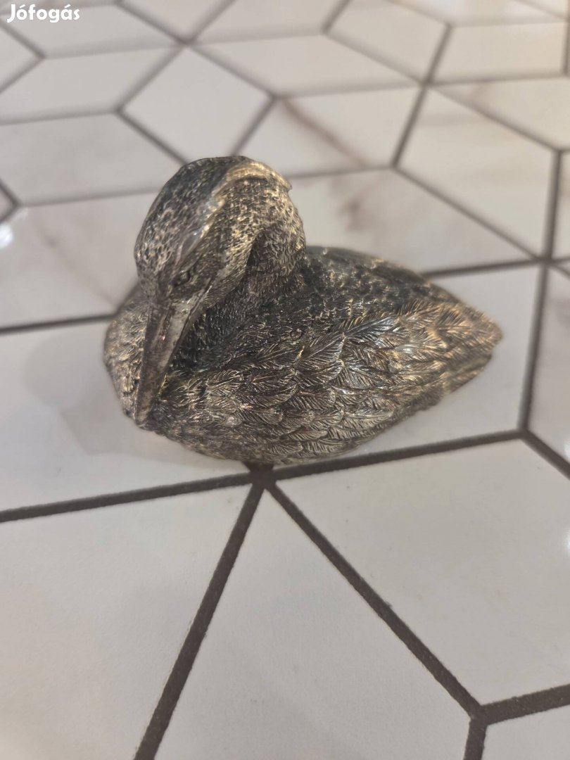 Olasz, ezüstözött kis kacsa dísztárgy, 7cm