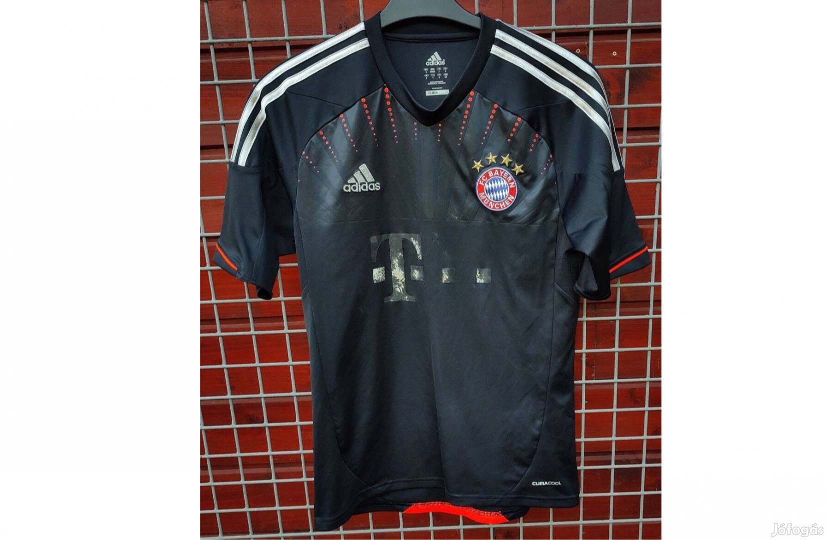 Elől hímzett adidas logó és Bayern München címer illetve Telekom logó