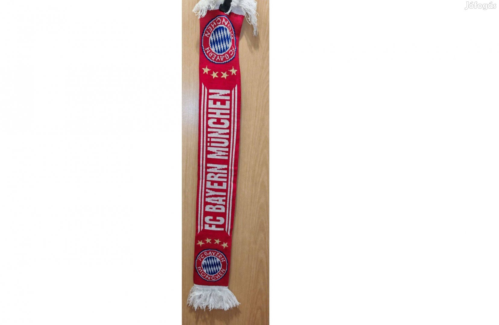 Egyik oldalán FC Bayern München felirat és Bayern címerek