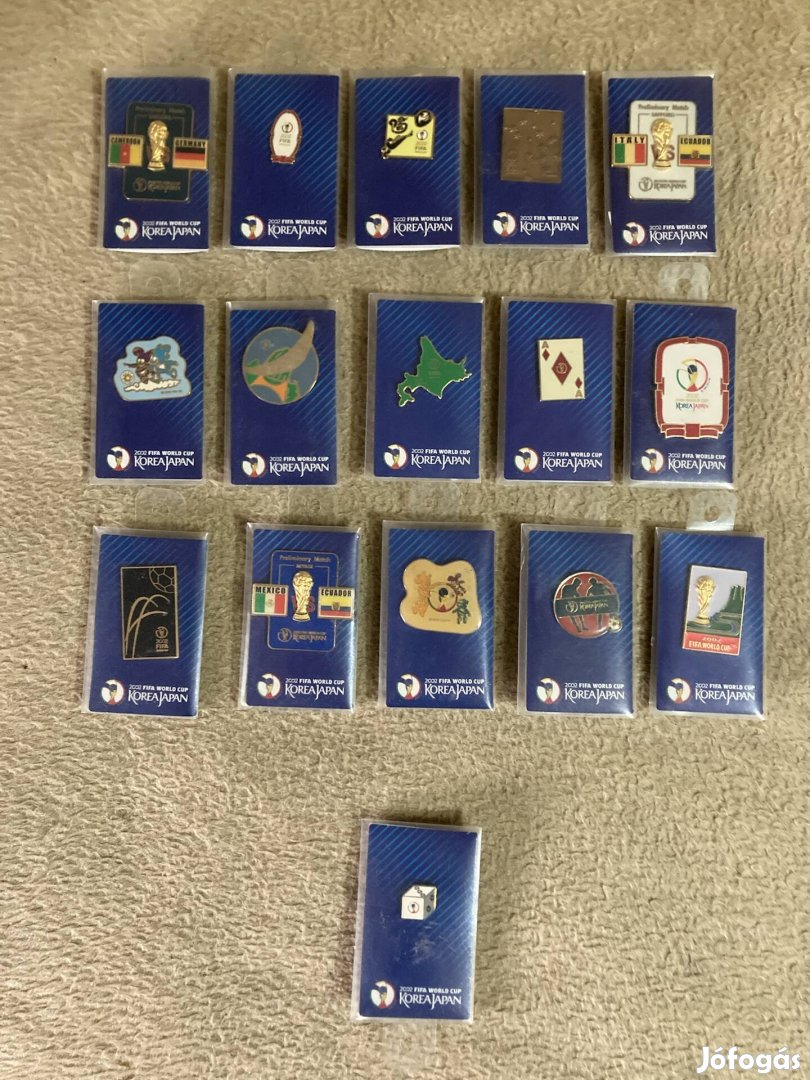 Eladó a kepeken látható 16db 2002-es FIFA (Japán és Korea) közös rendezésű Világ Kupa Promóciós Kitűző(ik) !