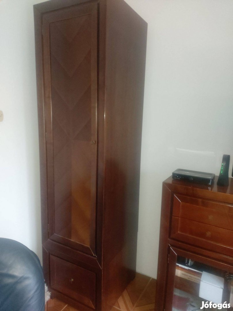 3 részes fa dió színű szekrény sor 2 álló , ruha akasztó alsó része rakodós 1 vitrines szekrény