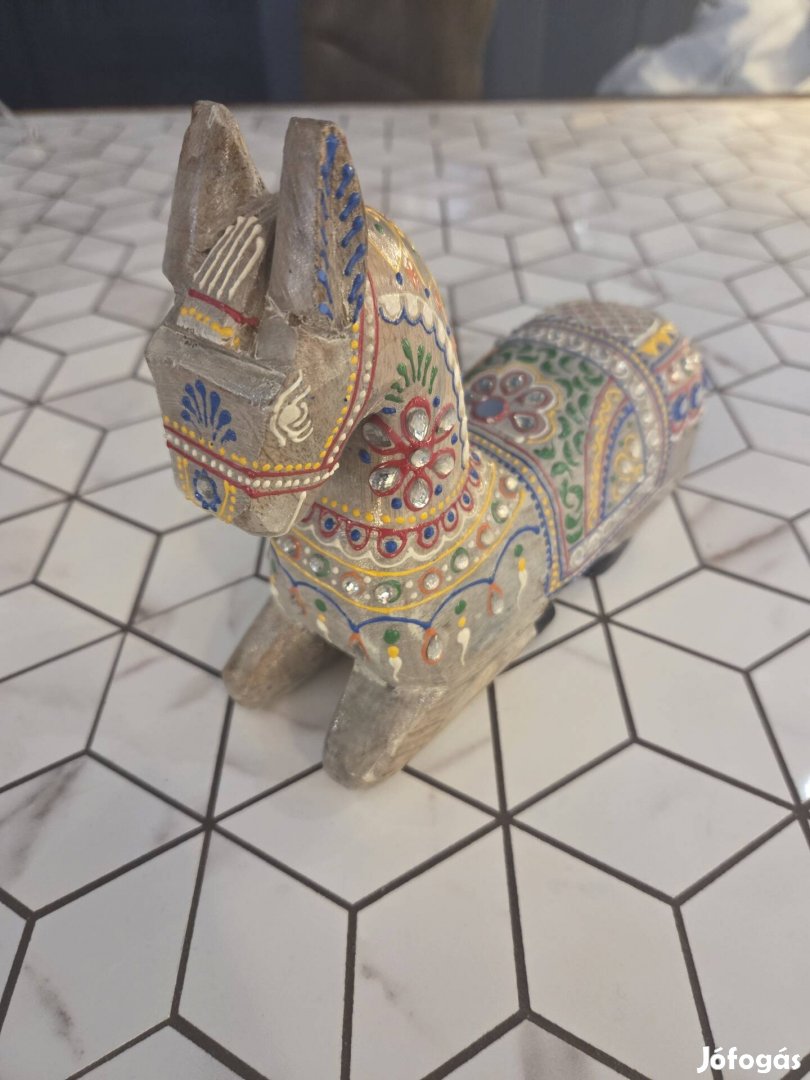 21cm hosszú, színesen díszitett fa dísztárgy
