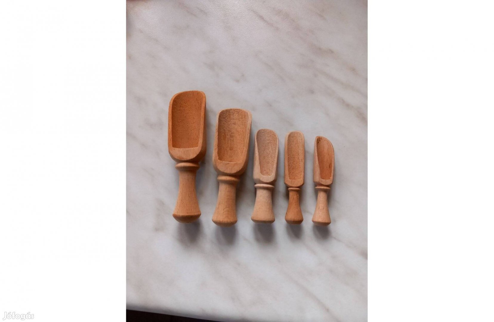Fa fűszer adagoló kiskanál 5 db - Új (10,8,7,6 cm)