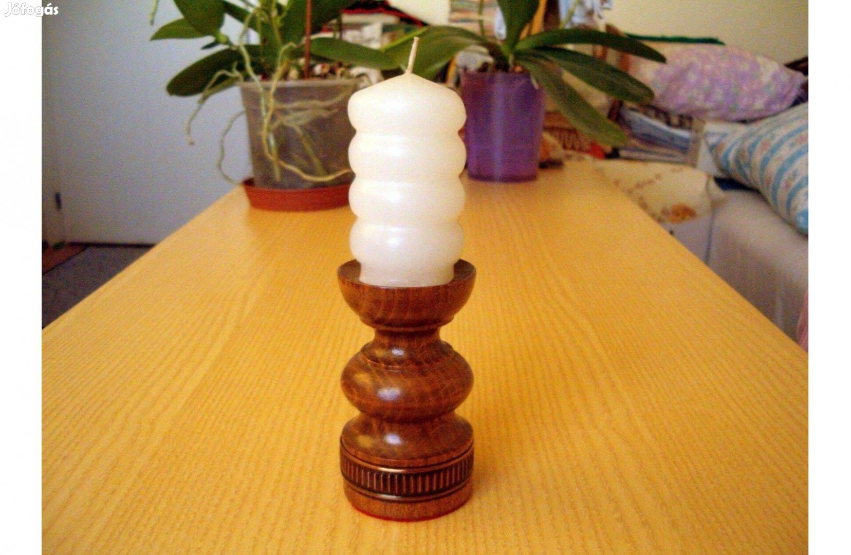 Fa gyertyatartó, gyertya tartó + gyertya, 17,5 cm