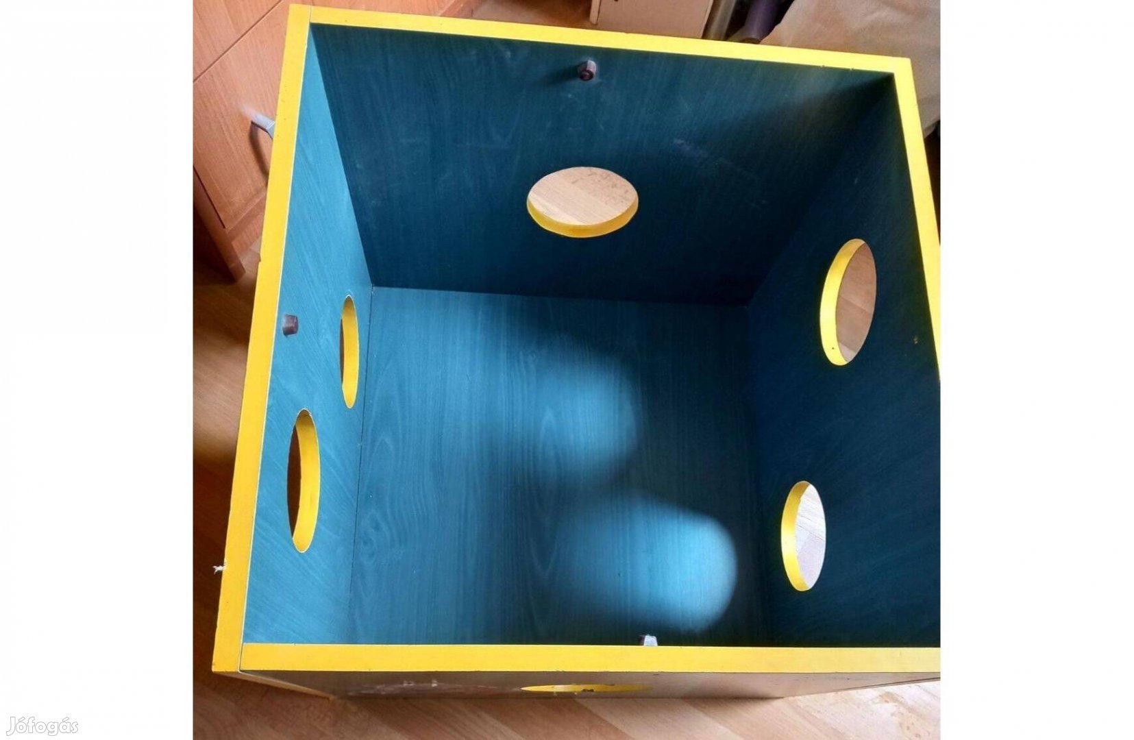 Eladó egy jó állapotban lévő fa játék tárolódoboz 50x50 cm, 40 cm magas. Érdeklődés esetén van hozzá azonos fából és színből készült 2 polcos szekrény is.