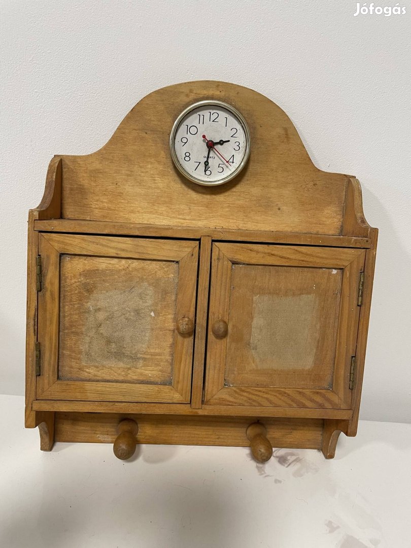 Eladó fa kulcstartó szekrény órával.