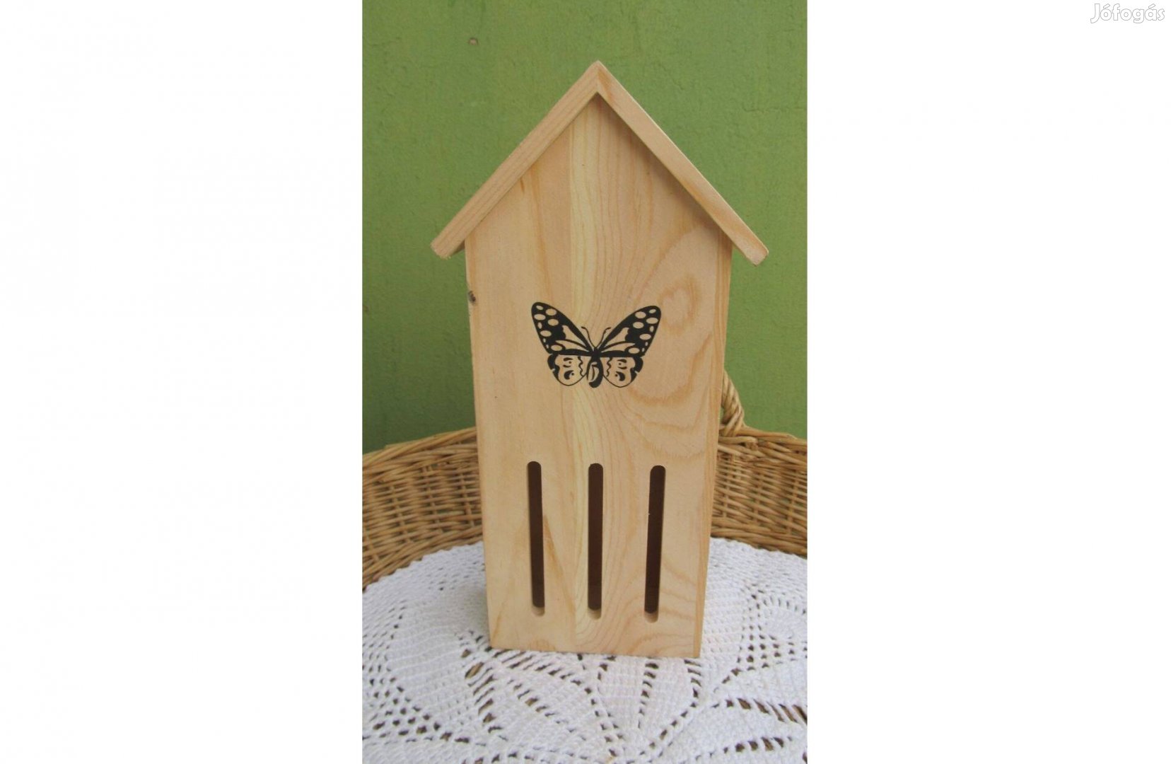 Eladásra kínálom a képen szereplő fa pillangóházat. A képek magukért beszélnek. Körbe fotóztam. Szép új állapotban. Fából készült pillangó ház. Fa szoba, szálloda, menedék, kerti dekoráció . Fészekdoboz, rovardoboz, kültéri .