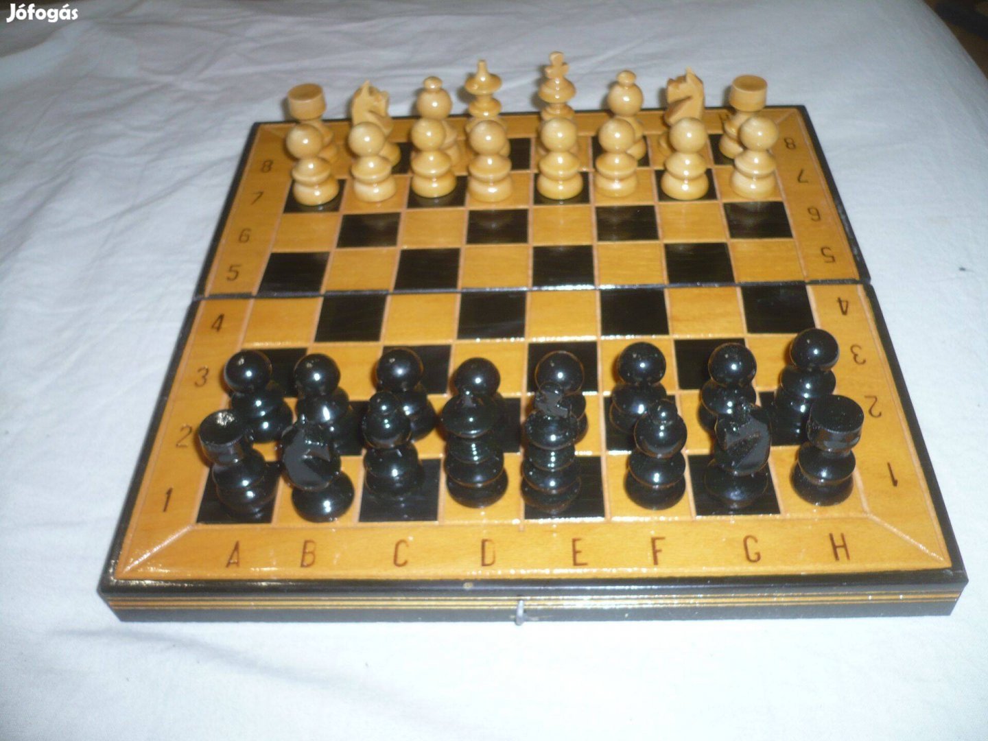 fa sakk készlet, asztal 26x26cm ,bábú 5-3,5cm közötti