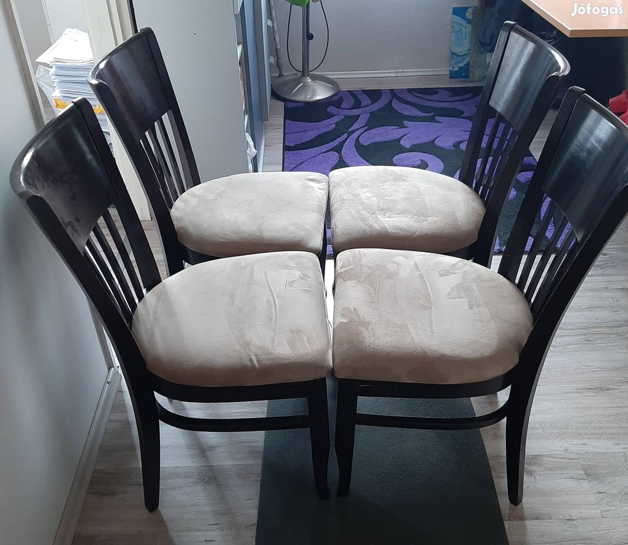 Klassz fa székek puha plüssös üléssel. Darabja 9900 ft,csak egyben eladók.