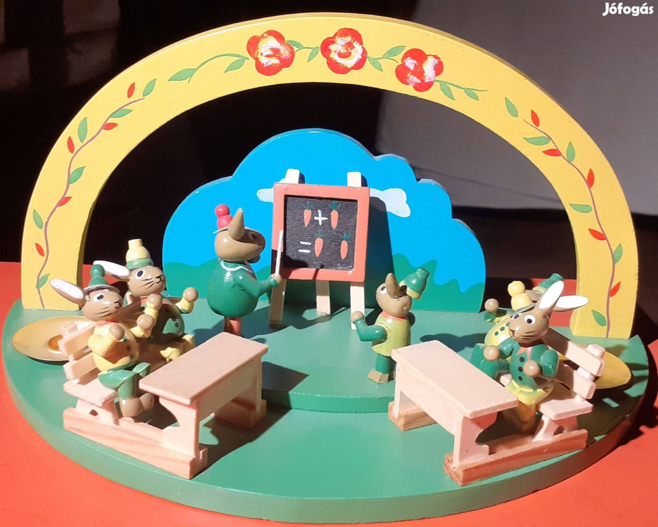 Fából készült nyúl iskola dísztárgy