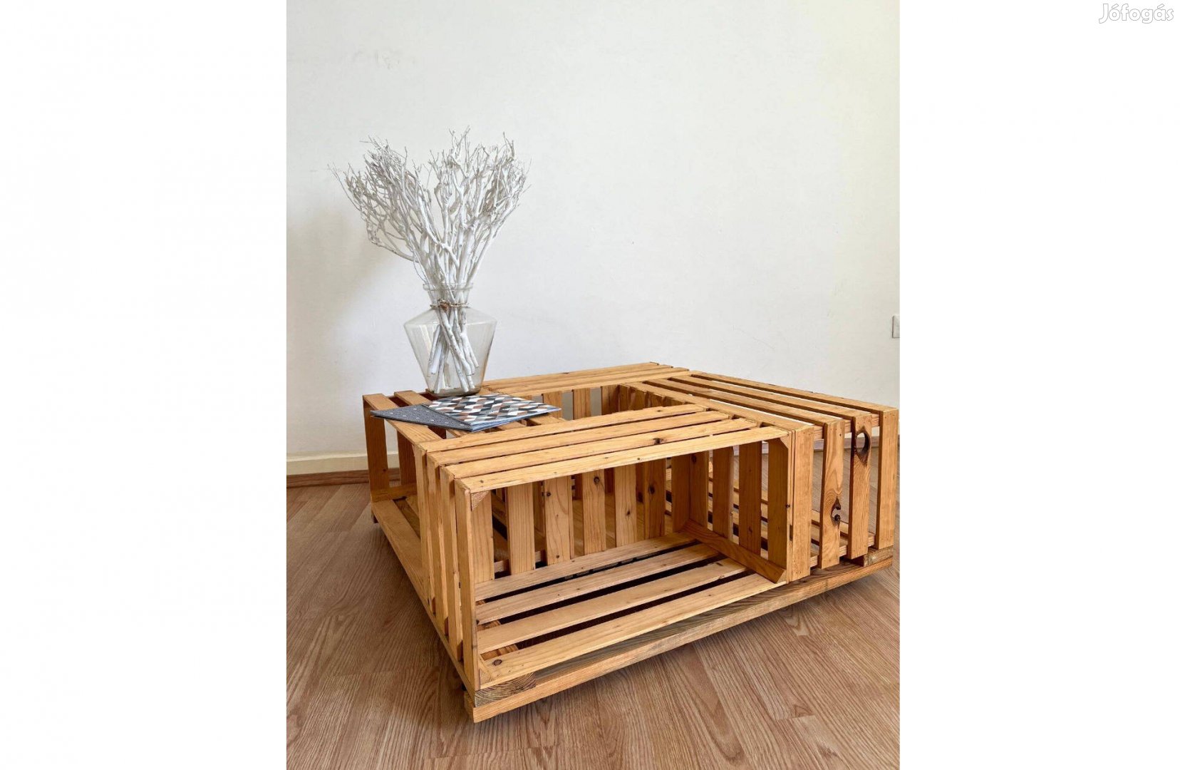 Kihasználatlanság miatt eladó faládából készült görgős asztal, dohányzóasztal. Személyes átvételre lehetőség van Bp. különböző pontjain előzetes egyeztetés után.