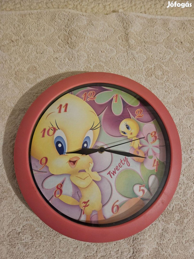 Eladó a képeken látható aranyos Csőrike mintás, rózsaszín keretes gyerek falióra. Pontos, modern, tündéri óra. Babaszoba dekoráció. Méret: átmérő 29 cm.