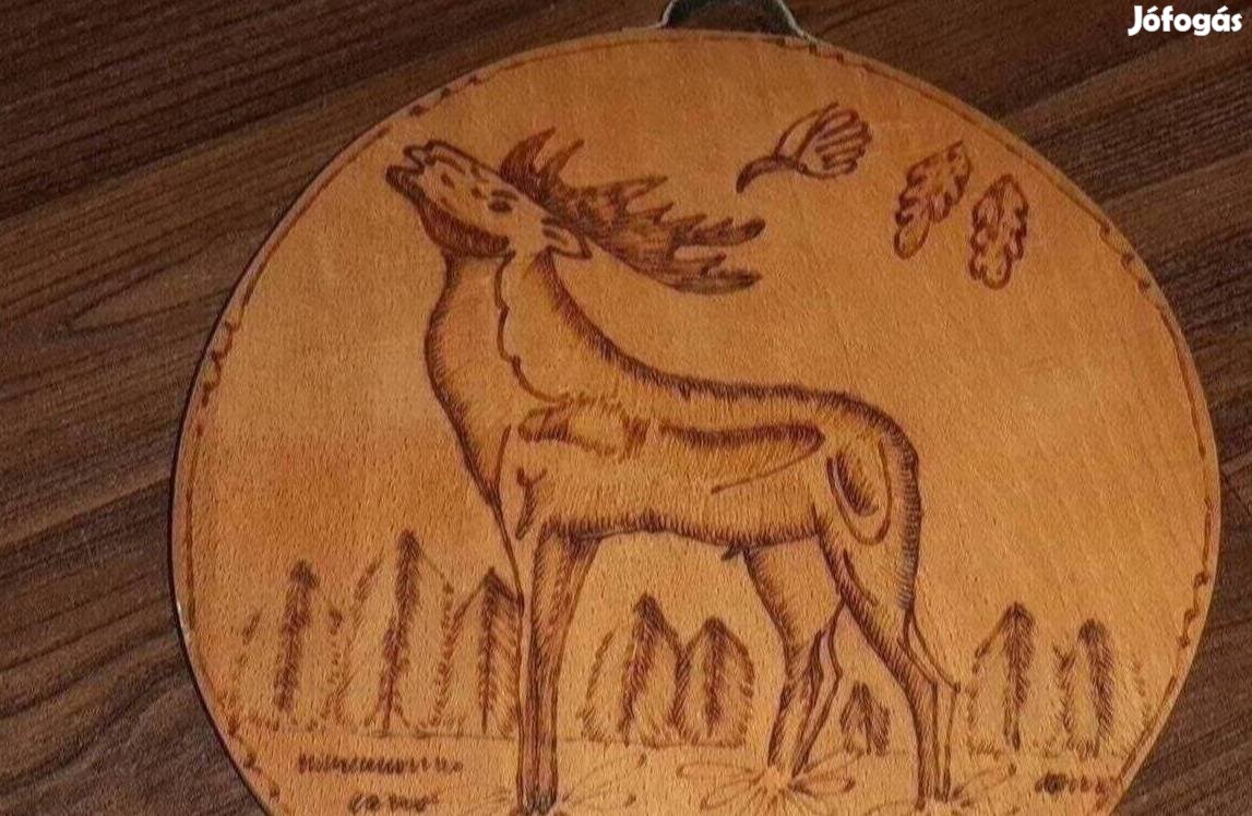 Falra akasztható dísz illetve váza, szarvas motívumokkal díszítve.