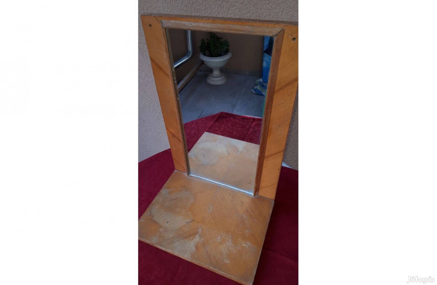 Eladó a képen látható, régi, 29, 5 x 42 cm-es falra akasztható tükör, 21 x 29, 5 cm-es polccal.