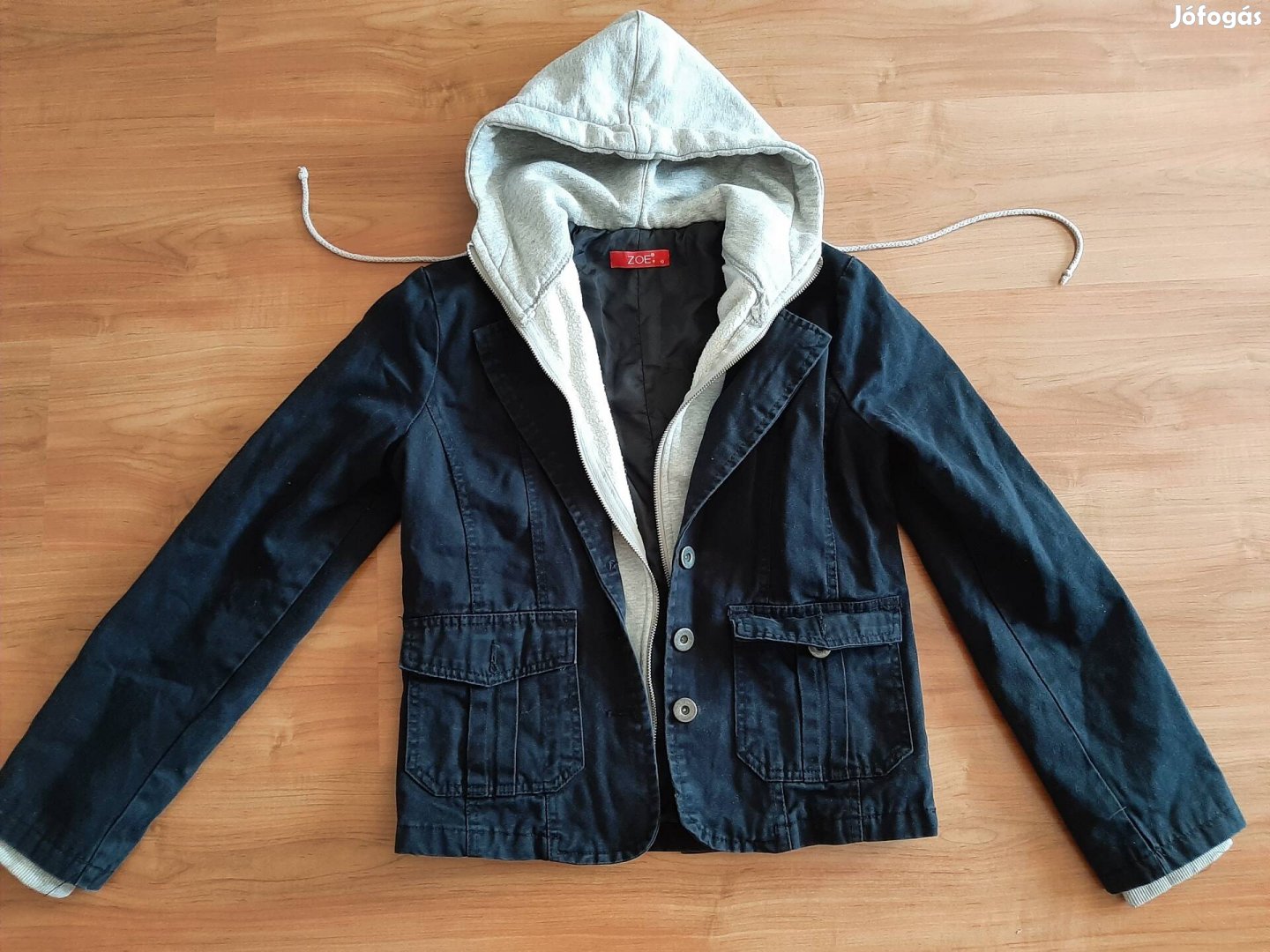 S méretű farmer dzsekis pulcsi.