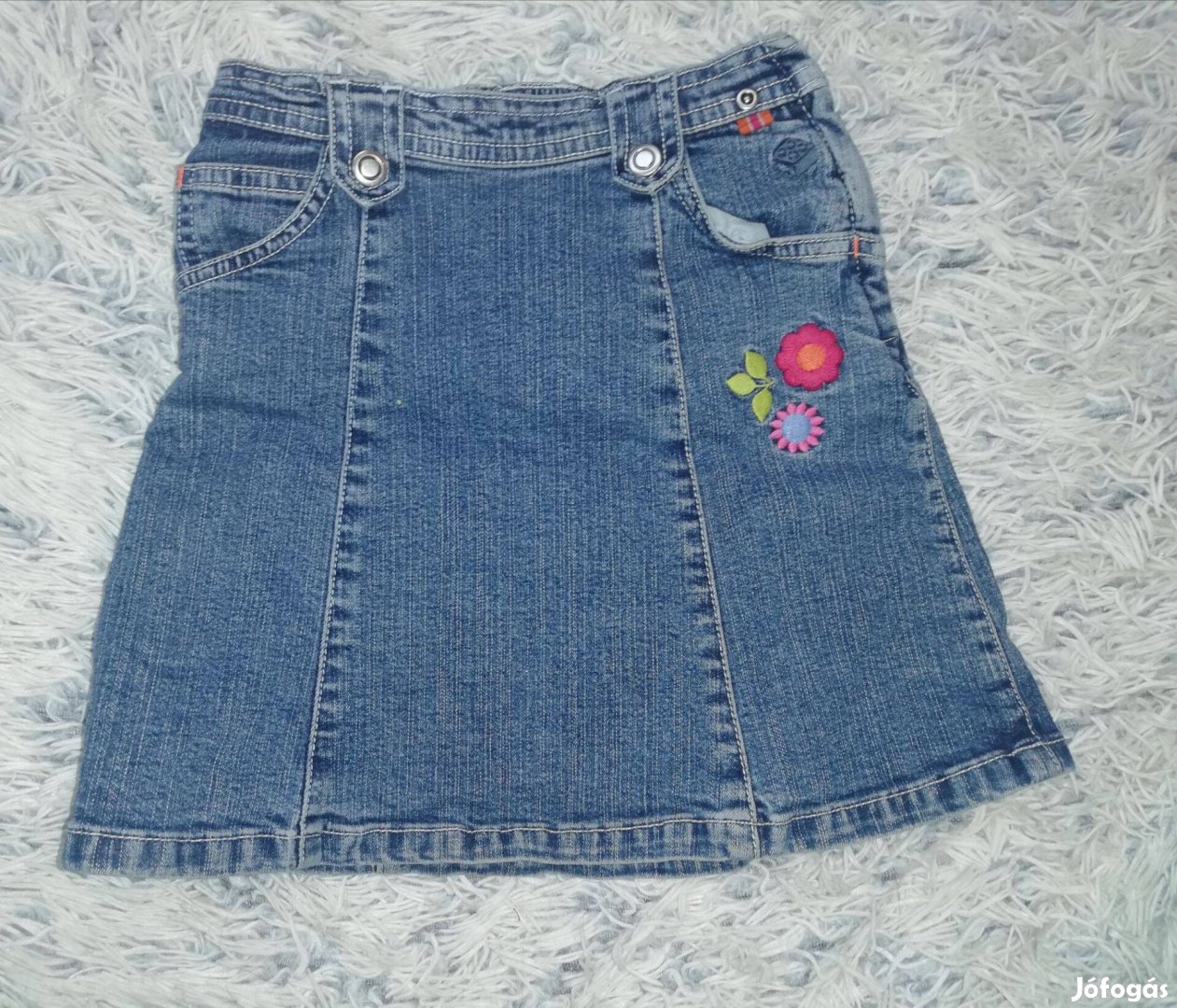 virághímzéses kék farmerszoknya, Lego, 4 év, 104