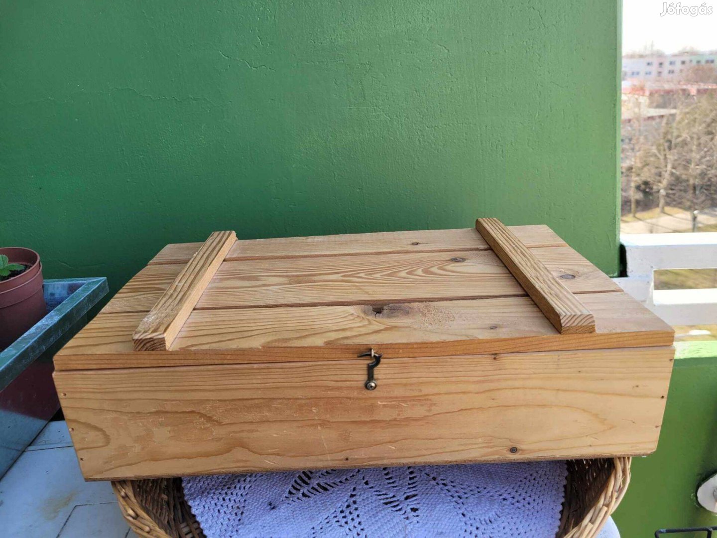 Eladásra kínálom a képen szereplő fedeles fa dobozt, bortartó ládát. A képek magukért beszélnek. Körbe fotóztam. Garázsba apróságoknak, szerszámoknak kiváló.