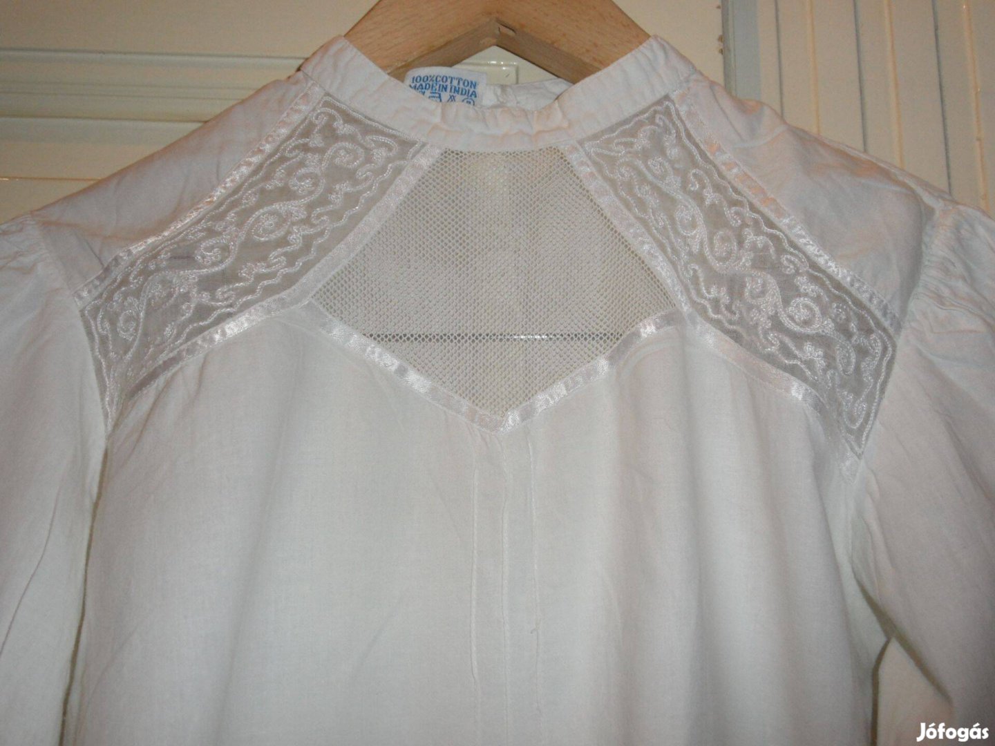 A képen látható fehér Indiai női blúz a megadott méretekkel eladó.
