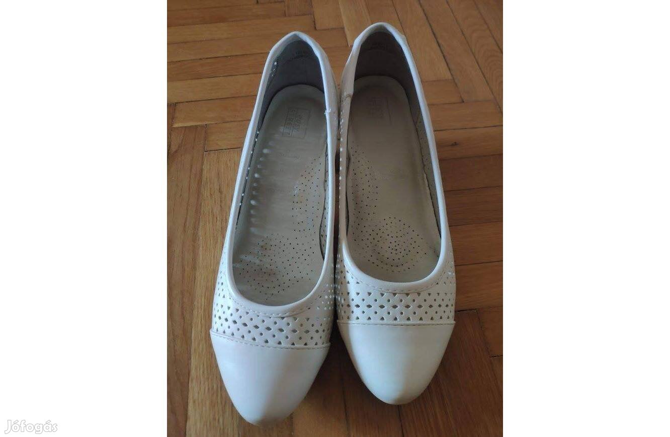 Eladó megkímélt állapotú (egyszer viselt) oldalán lyukacsos fehér bőr körömcipő.