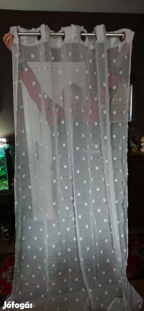 Fehér függöny végig rávart kis dísszel, fém karikákkal eladó