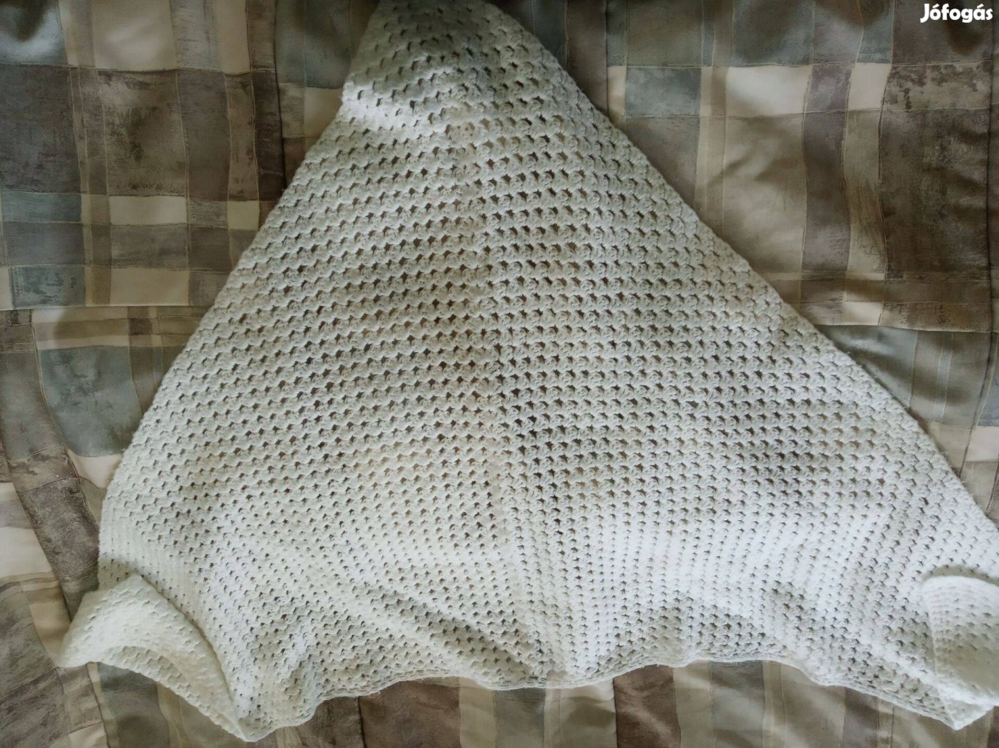 Fehér kötöt vállkendő.