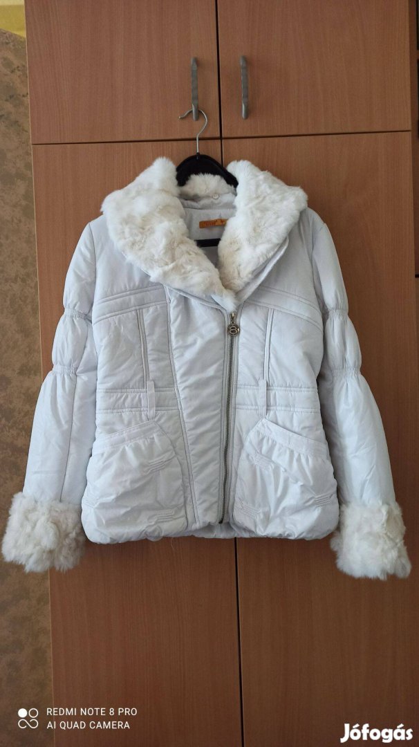 Fehér különleges, dekoratív szőrmével díszített átmeneti kabát M-es méretű, a nyakáról, illetve az ujjairól le lehet gombolni a szőrmét, új állapotú 6000 Ft-ért eladó.