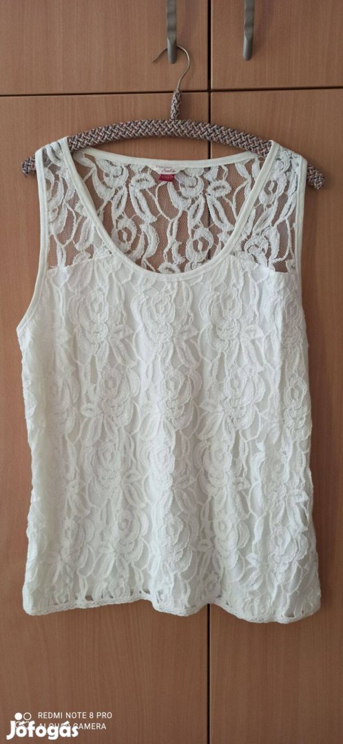 Fehér pamut elől csipkés pántos felső 42-es méretű új állapotú 2800 Ft-ért eladó.