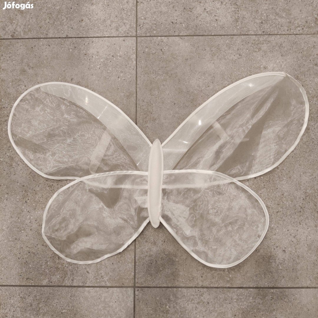 Eladó egy átlátszó fényes fehér színű pillangószárny jelmez óvodásoknak. Állítható vállpánttal.