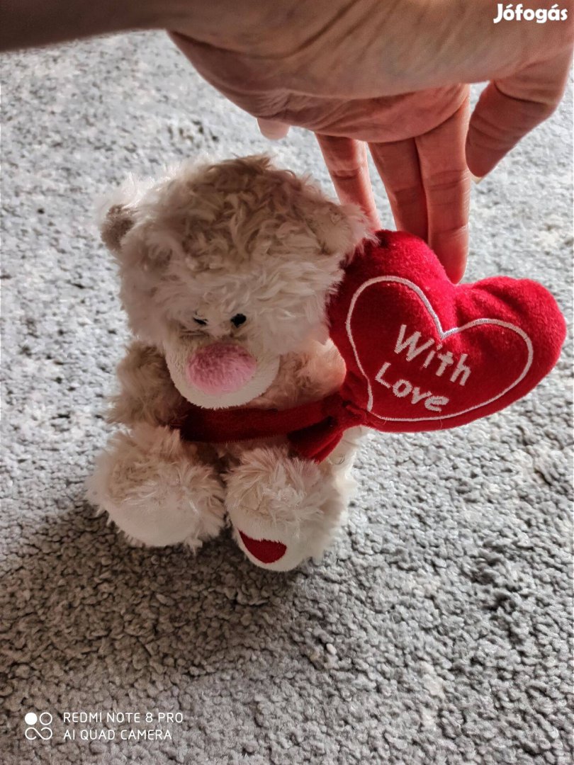 Fehér plüss maci piros szívvel új állapotú 15 cm magas, 1500 Ft-ért eladó.
