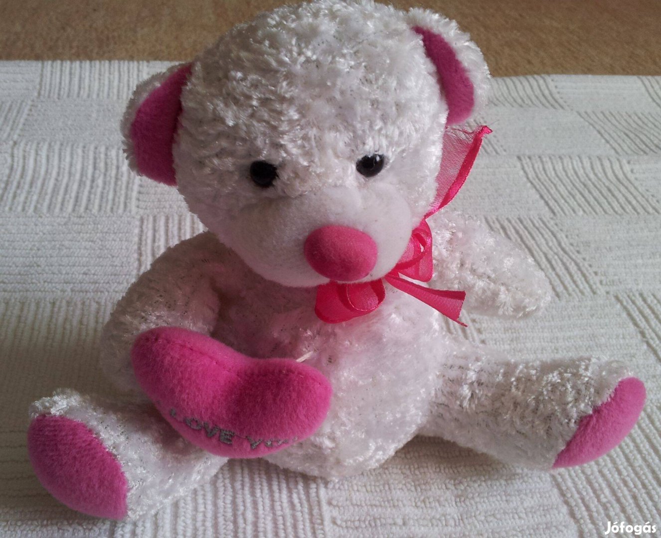 Fehér plüss maci rózsaszín szívvel új állapotú 15 cm magas 1500 Ft-ért eladó.